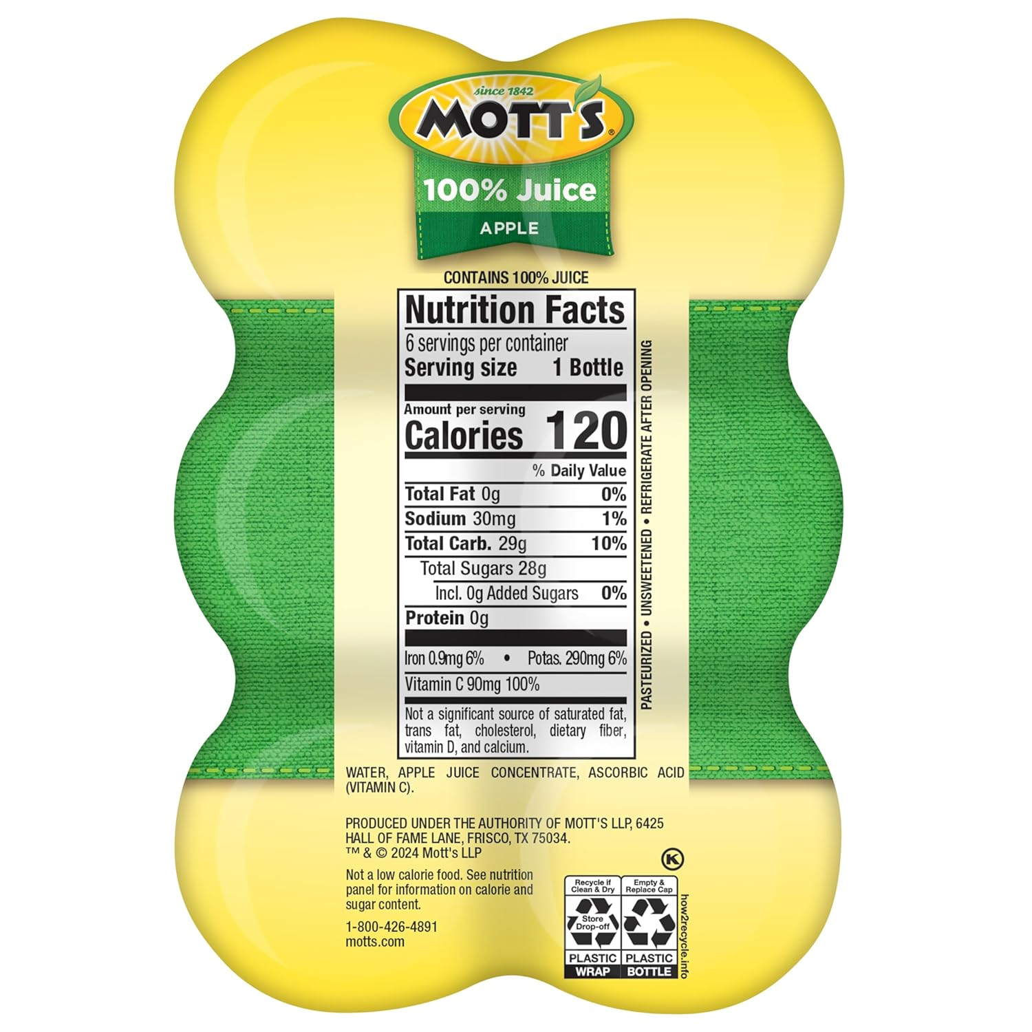 Mott's 100% Original Apple Juice, 8 Fl Oz Bottles, 24 Count (4 Packs Of 6), 2 Servings Of Fruit, 100% Fruit Juice, Gluten-free, Caffeine-free, Kosher, Contains No Artificial Colors Or Sweeteners